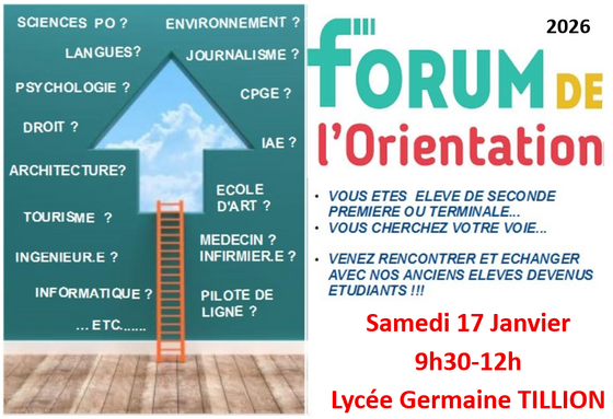 A l’occasion de notre FORUM de l’ORIENTATION 2026, nos lycéens de SECONDE, PREMIERE et TERMINALE pourront rencontrer et échanger avec d’anciens élèves de l’établissement désormais étudiants. Au-delà des renseignements sur leurs formations, les étudiants pourront également donner des indications sur ce qu’est la vie étudiante sous tous ses aspects.
